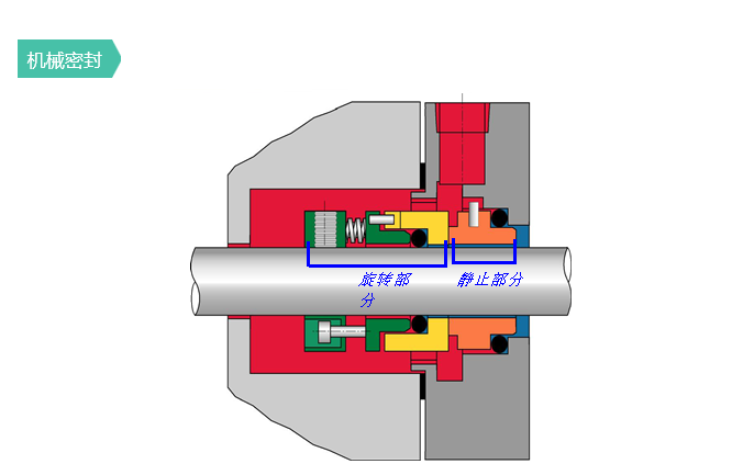 機(jī)封總是由旋轉(zhuǎn)部件(黃色部分)和靜止部件(橙色部分)兩大部分組成,兩相對運(yùn)動(dòng)的動(dòng),靜環(huán)面成為密封的主密封面。