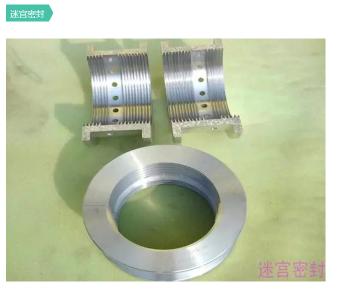 迷宮密封是在轉(zhuǎn)軸周圍設(shè)若干個(gè)依次排列的環(huán)行密封齒,齒與齒之間形成一系列截流間隙與膨脹空腔,被密封介質(zhì)在通過曲折迷宮的間隙時(shí)產(chǎn)生節(jié)流效應(yīng)而達(dá)到阻漏的目的。