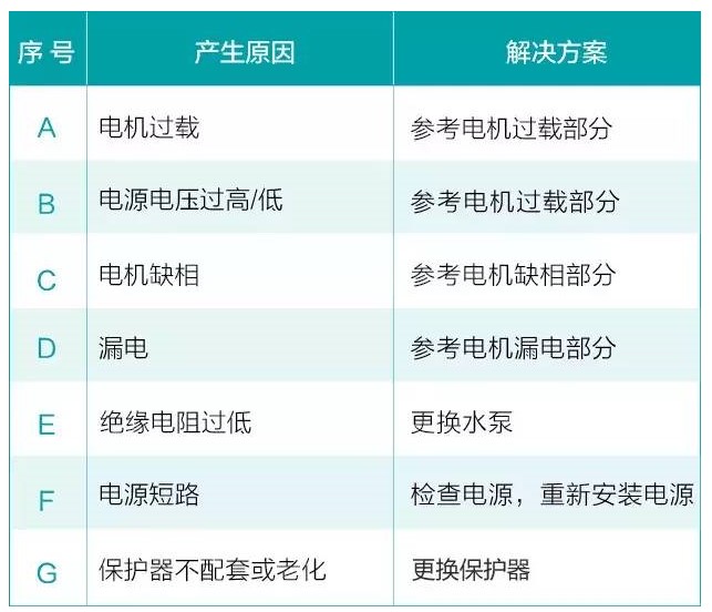 如果所配套的電源保護(hù)器與水泵電機(jī)是吻合的,在正常情況下,保護(hù)器是不會(huì)跳閘的。保護(hù)器跳閘的主要原因有: