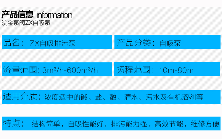 皖金泵閥不銹鋼自吸泵主要參數(shù):