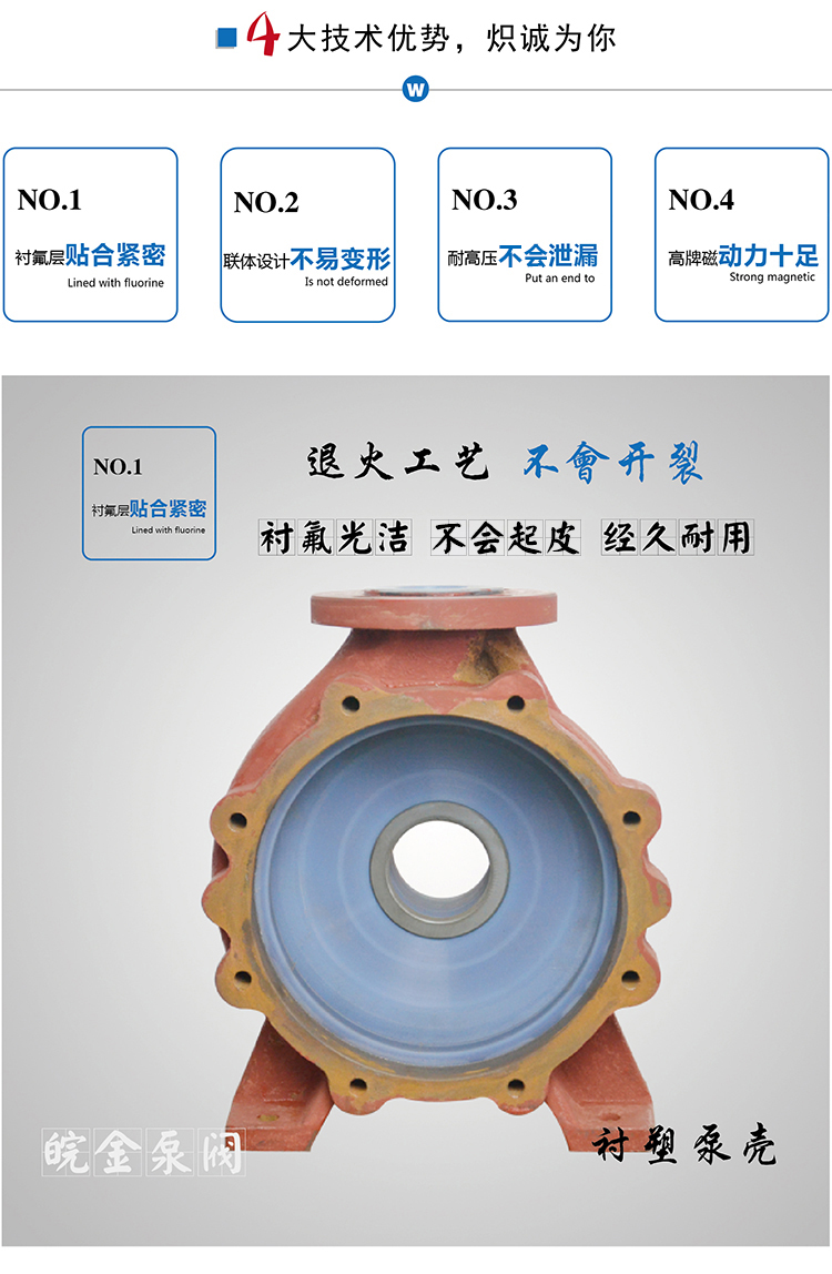 一、殼體采用高溫退火工藝,不會開裂,襯氟層貼合緊密,不會起皮,經(jīng)久耐用。