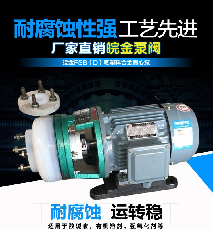 FSB短支架氟塑料離心泵,整機設(shè)計輕巧,結(jié)構(gòu)緊湊,節(jié)省使用場地,依工況要求可選用氟塑料、氟合金等材料。