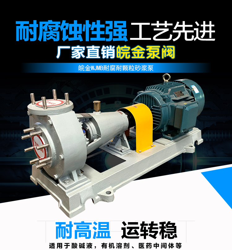 可根據客戶需要配置相應的沖洗方案,廣泛應用于酸洗,環(huán)保脫硫,脫硝,化工,造紙,染料污水處理等領域。改泵運行穩(wěn)定,抗汽蝕性能強,特別合適含有顆粒雜質的酸堿性有腐蝕介質。具有高效節(jié)能,噪音振動低,可靠性高,壽命長,品質好、且價格公道合理等優(yōu)點,是化工,酸洗,環(huán)保,脫硫,污水處理的理想輸出設備。