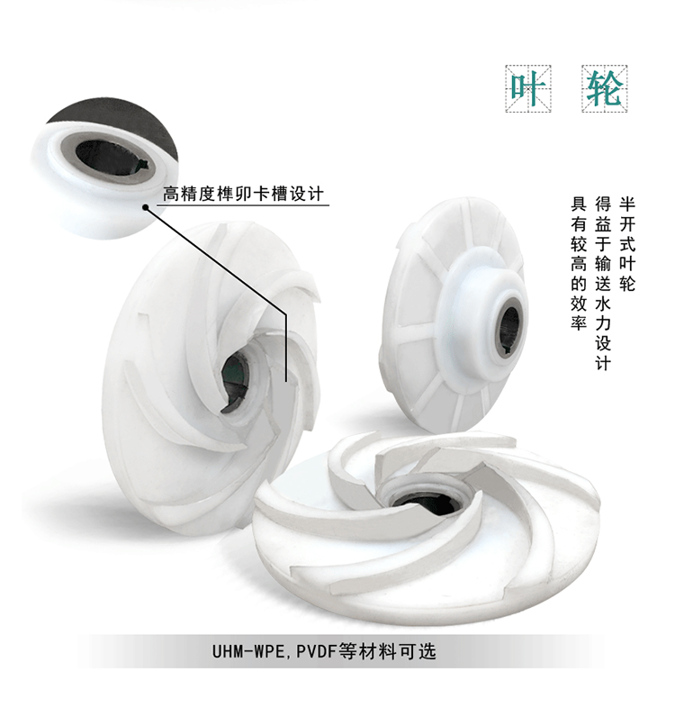 可靠厚實,外面鑲包金屬夾套,結構牢固,運行穩(wěn)定,且能有效解決長期室外運行造成的塑料模壓件老化等不利影響。過流部件采用耐腐耐磨的UHM-WPE,PVDF等非金屬材料制造。該泵雖為半開式葉輪,得益于成熟的水力設計,具有較高的效率。采用獨特的耐顆粒集裝式單,雙端面機械密封。