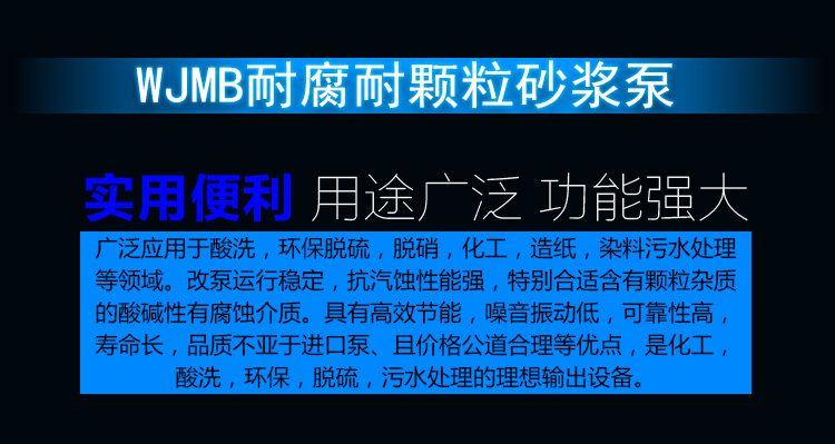 適用介質: 含有顆粒雜質的酸堿性有腐蝕介質,料漿、污水等